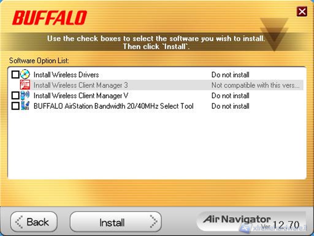 Avviata l'installazione il sistema operativo non riconoscerà l'autore del driver come attendibile, pertanto sarà necessario attestare l'attendibilità inserendo il segno di spunta alla scritta "Considera sempre attendibile il software proveniente da Buffalo Inc." per bypassare questo blocco. Completata l'installazione, un messaggio ci informerà che la chiavetta è correttamente settata ad una frequenza di 40MHz (al massimo).